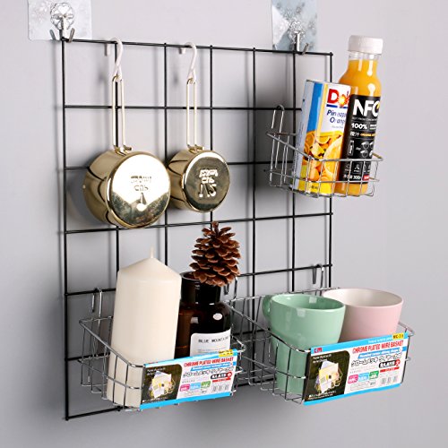 Kleanner Multipurpose Mesh Wall Hanging Storage Basket, Wire Grid Panel ,Kitchen Bathroom House Bin Organizer, Idea For Home Supplies Organization,Wall Decor - 3 PCS / SET