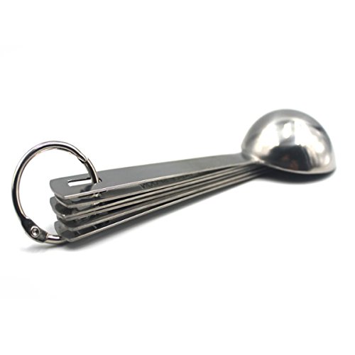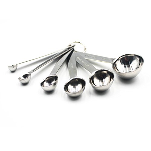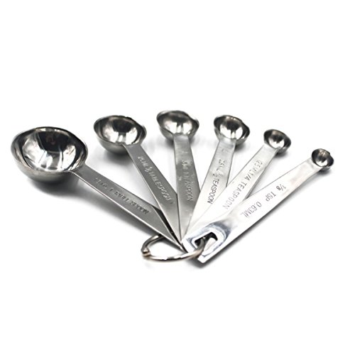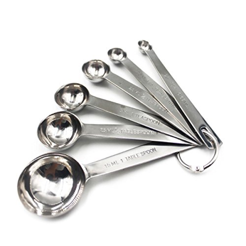 - Set of 6 spoons with exact engraved measurement: Tbsp. (15 ML), tsp. (5 ML), 3/4 tsp. (3.75 ML), 1/2 tsp. (2.5 ML), 1/4 tsp. (1.25 ML), 1/8 tsp. (0.63 ML).