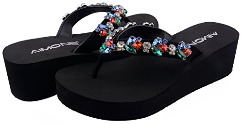 -. Title : アイモネ Emerald ラインストーン ミッドヒール フリップフロップ レディースビーチサンダル