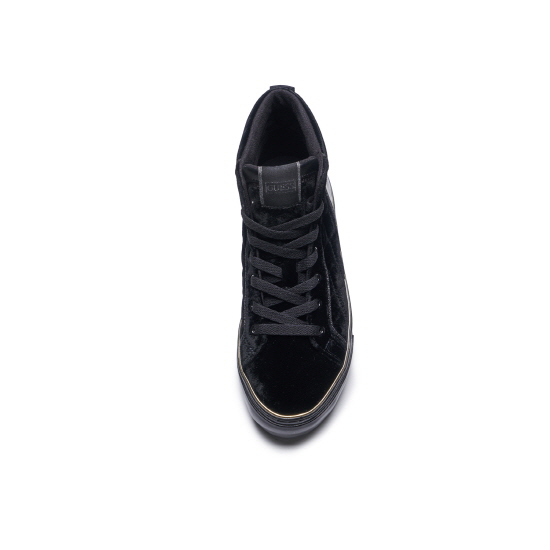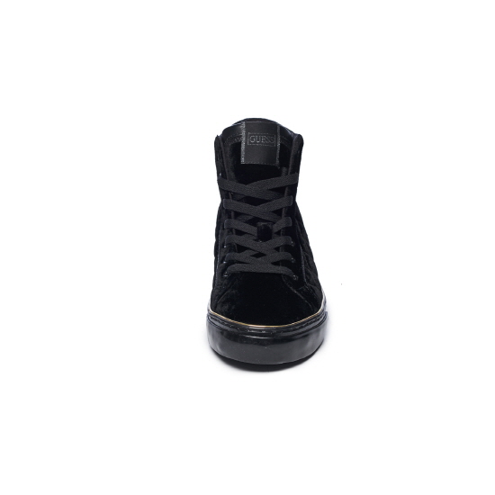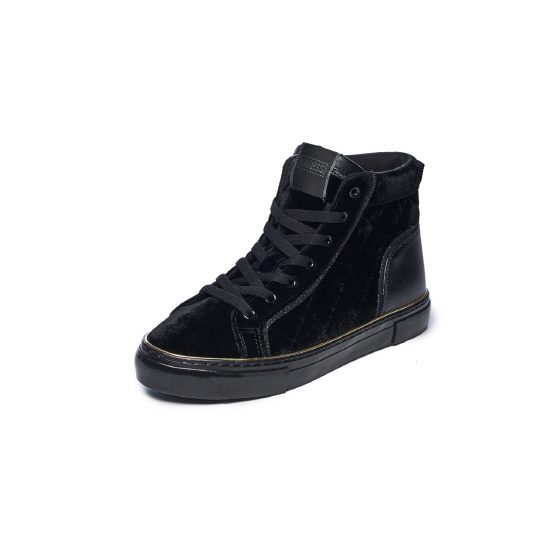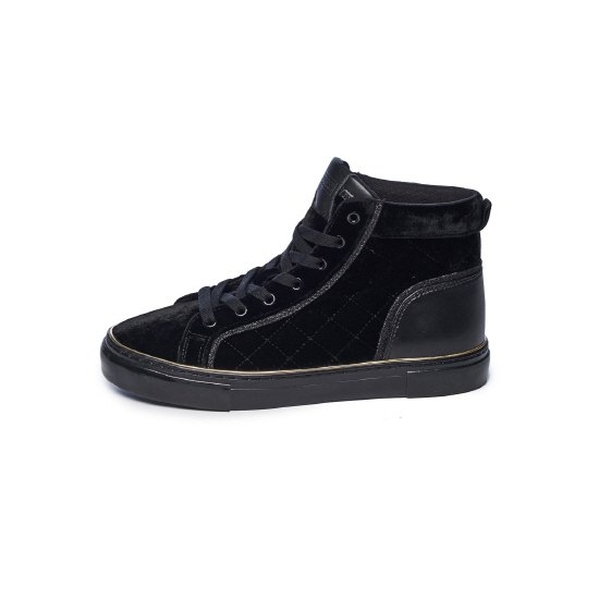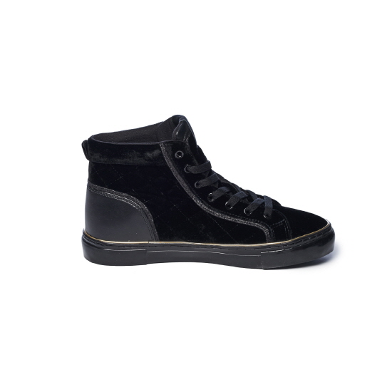 * 글로시한 블랙 슬림솔 하이탑 스니커즈