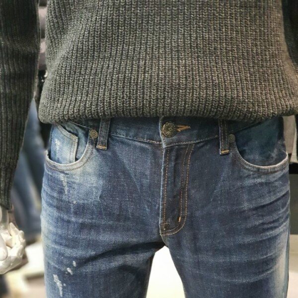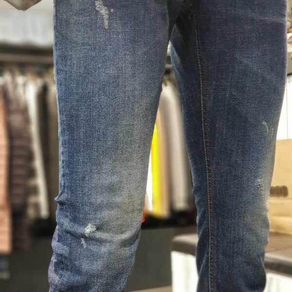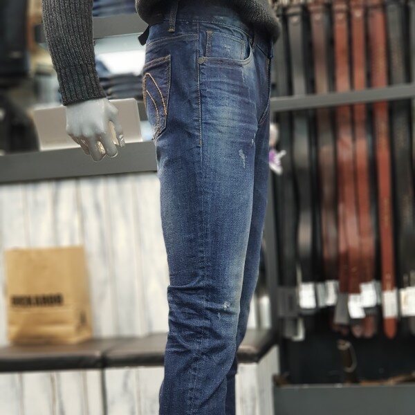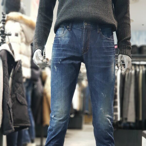 버커루의 대표적인 디자인의 남성 테이퍼드 데님팬츠입니다~~♡♡중청컬러의 멋스러운 워싱에 군데군데 데미지 포인트가 아주 매력적인 데님팬츠!!