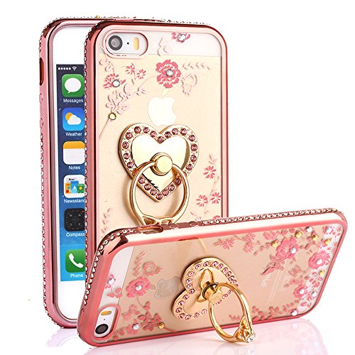 -. Title : iPhone SE Case, iPhone 5S Case, CaseUp Glitter Crystal Heart Floral Series - Slim Luxury Bling Rhinestone Clear TPU Case With Ring Stand For iPhone SE/5S/5,