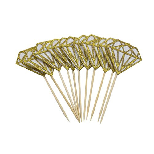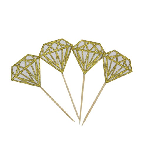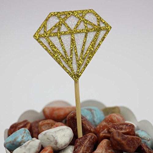 Mybbshower Gold White Glitter Diamond Cupcake Topper for Engagment Party Pack of 20