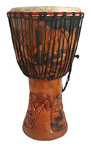 NOVICA Wood djembe drum, Botanical Beat