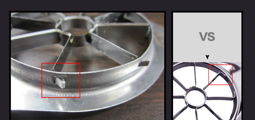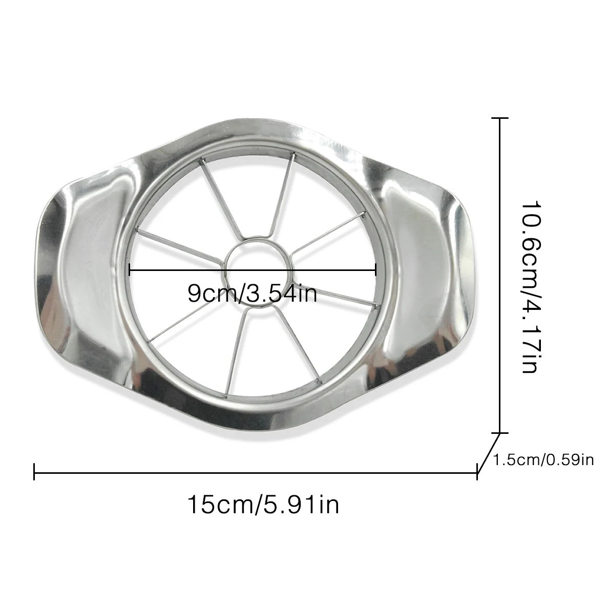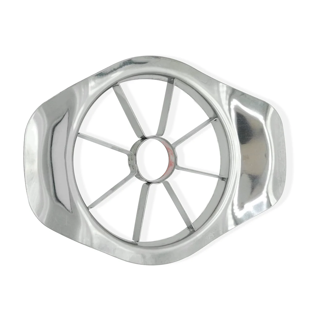 100% stainless steel apple slicer. Effortlessly slice your apple to 8 pieces and remove the core. Superior resiliency compared to apple slicers made of plastic and resin.