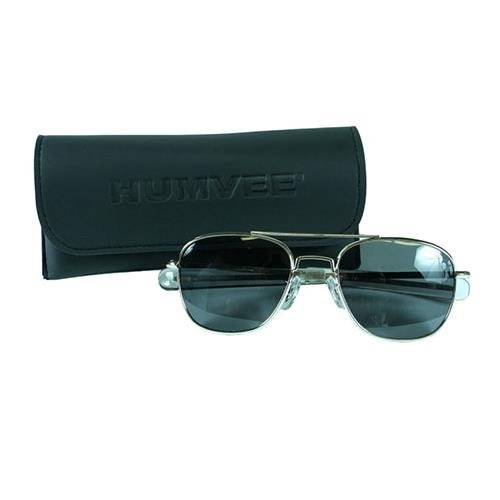 Humvee Pilot Sunglasses Grey Polarized Lens, Silver Frame