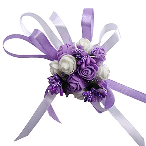 Steen Pack of 1 - Bridal Bridesmaid ribbon Wrist flower Wrist Corsage - foam flowers wedding (purple)