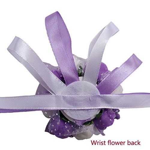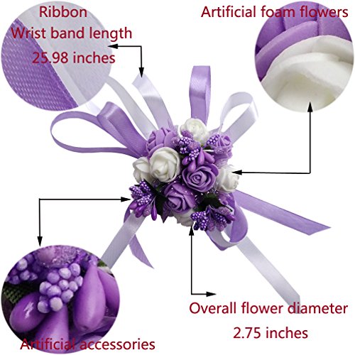 - Size: wrist flower diameter of about 2.75 inches, wrist ribbon length 25.98 inches, purple white flowers ornament beautiful wrist flower