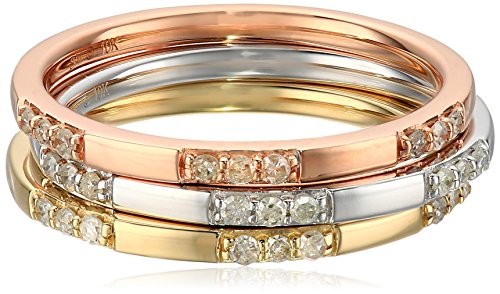 -. Title : 10k White, Yellow and Pink Gold Diamond Three Stone Stackable Ring (1/4cttw, I-J Color, I2-I3 Clarity), Size 7