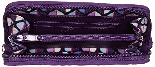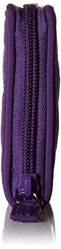 PERFECTLY SIZED: Our Vera Vera RFID Grab and Go measures 6.25 x 4.25 x .75 inches with 6 inch removable wrist strap and featuring a zippered closure, 3 card slips, a zippered coin pocket, bill pocket, and RFID protection