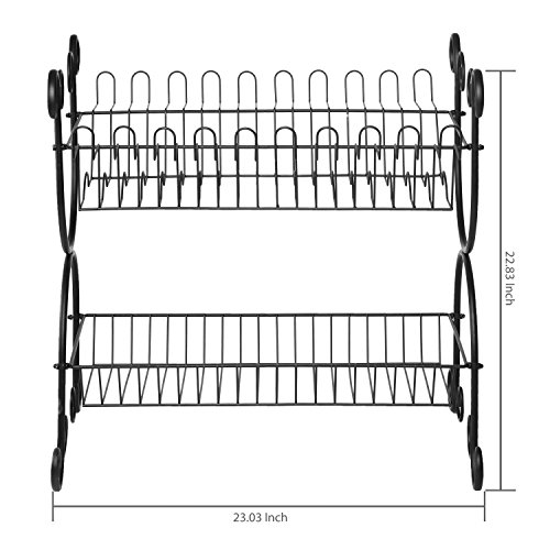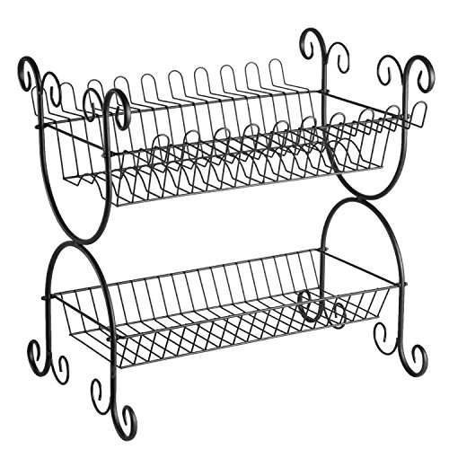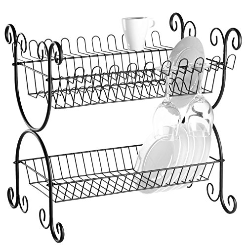-. Brand : MyGift -. Color : Black -. Feature : Countertop steel dish drying rack with elegant scrollwork design with a matte black finish. / Features 2-tiers for cups, plates and bowls and convenient holders for wine glasses and other stemware. / Ideal for drying or storing dishes on your kitchen counter or in cupboards. / **Official MyGift® product** / Approximate Dimensions (in inches): 23.0 H X 22.75 W X 18.25 D. -. Label : MyGift -. Manufacturer : MyGift -. Model : SHOMHNK004 -. MPN : TB-KIT0787BLK -. NumberOfItems : 1 -. PackageQuantity : 1 -. PartNumber : TB-KIT0787BLK -. ProductGroup : Kitchen -. ProductTypeName : KITCHEN -. Publisher : MyGift -. Size : Large -. Studio : MyGift -. Title : 2-Tier Scrollwork Design Matte Black Metal Counter Dish Drying Rack Organizer