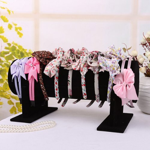 -. Feature : Type: Jewelry display stand / Size: Shown on the picture / Material: Velvet+PVC / Color: Black / Package Content: 1 X Velvet Headband Stand