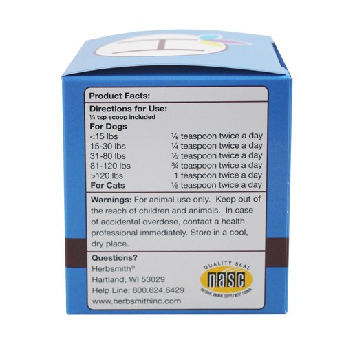 Herbsmith Milk Thistle supports healthy liver function. It's great for a dog with allergies, digestive issues, or to combat the negative side effects of the harsher alternatives. The active ingredient in milk thistle is silymarin, which has great antioxidant properties. Herbsmith Milk Thistle can be used together with Herbsmith Clear AllerQi to provide extra support for the dog who is effected more during allergy season.Feature