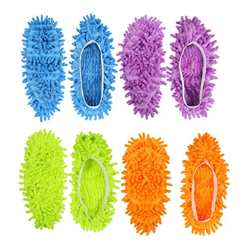 FASOTY 8 Pieces Duster Mop Slippers, Multi-Function Washable Dust Mop Slippers Floor Cleaning and Shoes Cover