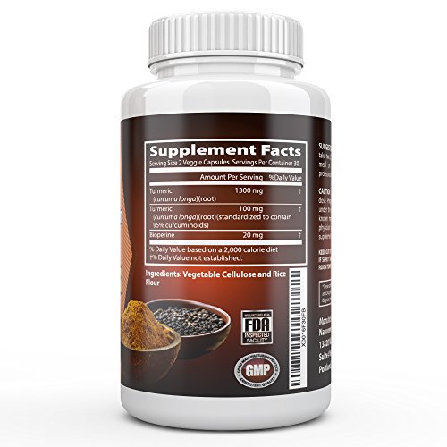 -. Feature : ★ HEALTHY SPICE. HEALTHY LIFE: Relieves from pain, Reduces Inflammation and Swelling, Nourishes Joints and Cartilage for Easy, Comfortable Movement / ★ BEST ABSORPTION: Highest amount of Bioperine / ★ STANDARDIZED: 95% curcumenoid extract from Curcuma Longa (root) / ★ PERFECT COMBO: Optimized balance of Black pepper and Turmeric for maximum bioavailability and potency / ★ NATURENE'S PROMISE: Innovative Formulas delivering High Health Benefits, with Safety and Quality