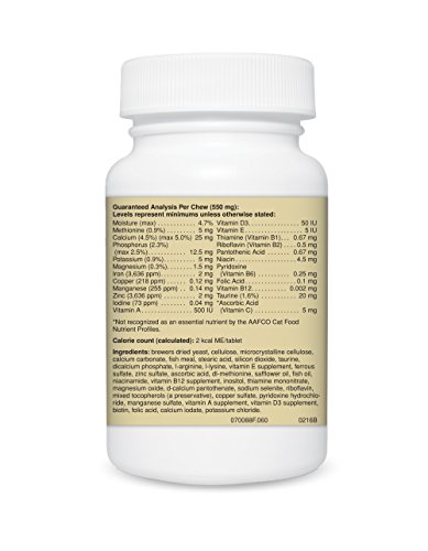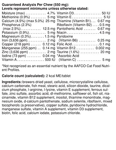 -. Binding : Misc. -. Brand : Natural Pet -. Feature : Our multivitamin is formulated by veterinarians and includes over 20 nutrients important to cat health / Daily Multi includes taurine an essential amino acid in cats to support proper digestion, cardiac and immune system health and eye function / Daily Multi helps fill nutritional gaps found in some commercial pet foods / Our tablets are an easy and economical way to make sure your cat is getting the vitamins, minerals and nutrients necessary for a long and healthy life / All Pet Natural's of Vermont products are manufactured in the USA and distributed from our offices in the Green Mountains of Vermont -. Label : Natural Pet -. Manufacturer : Natural Pet -. MPN : 3390.PARENT -. NumberOfItems : 1 -. PackageQuantity : 1 -. PartNumber : 3390.PARENT -. ProductGroup : Pet Products -. ProductTypeName : PET_SUPPLIES -. Publisher : Natural Pet -. Studio : Natural Pet -. Title : Pet Naturals of Vermont Daily Multi-Vitamin for Cats