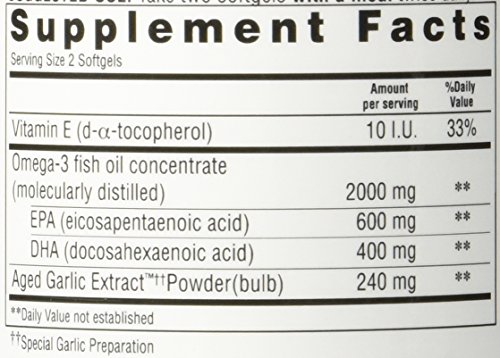 Kyolic Omega-3 is a molecularly distilled fish oil concentrate, quality tested for heavy metals and PCB's for maximum purity and potency, providing one of the purest and richest levels of sustainable Omega-3 essential fatty acids EPA and DHA. This highly purified and concentrated fish oil is sourced from the cold, pristine waters of Norway. It is then combined with odorless Aged Garlic Extract, to work synergistically with your body. These statements have not been evaluated by the FDA. These products are not intended to diagnose, treat, cure, or prevent any disease.Feature