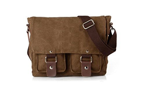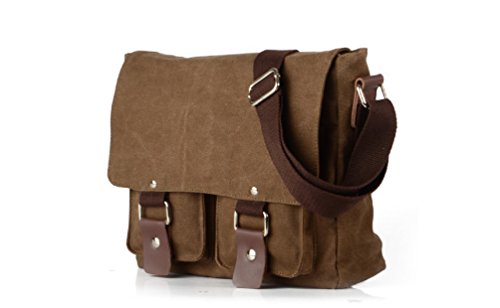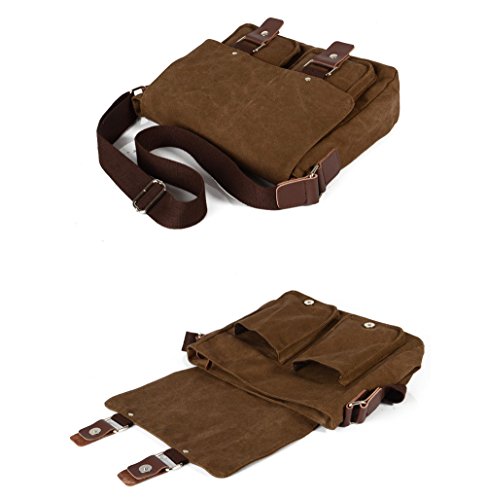 -. Feature : Multifunction canvas and leather bag: suitable for women, men, student, shopping, military, work and travel / High density cotton adjust rope for hand the bag, two ways to carry the bag: on your shoulder, or across your body with the cross-body strap / High density canvas material outside, cotton lining inside, soft, fashion, quality copper zipper. The bag size: 27cm X 10cm X 23cm; / Convenient Storage: two button pockets at the front of the bag; one zipper pocket at the back of the bag; one cell phone pocket, one card pocket, one zipper pocket and a main pockets inside; all pockets can be stored tissue, clothes, books, IPAD, cigarette, umbrella and everything you need; Large Capacity for Storage
