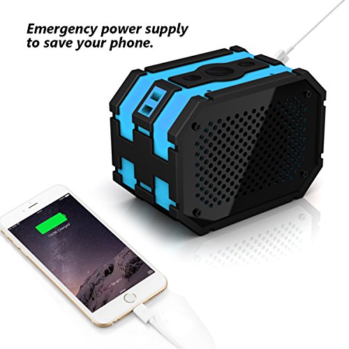 JTD ® Armor Portable Wireless Bluetooth Speakers with Additional 1000 mAh Emergency Power Bank Function and Splashproof Shockproof Dustproof for Ourdoor/Shower (Blue/Black)