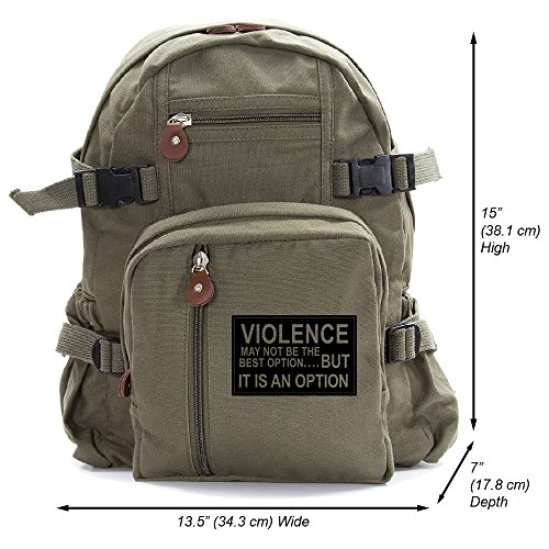 -. Title : Army Force Gear Violence Is an Option Heavyweight Canvas Backpack Bag