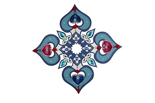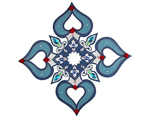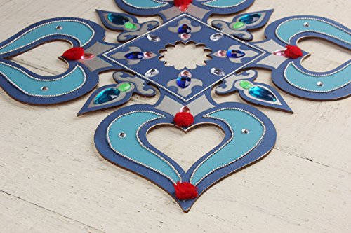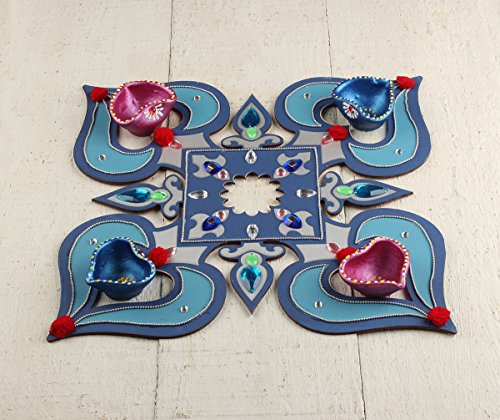 Store Indya, Decorative Floor Rangoli with Set of 4 Diyas Paisley Motifs & Studded Stones Traditional Festive Home (Blue)