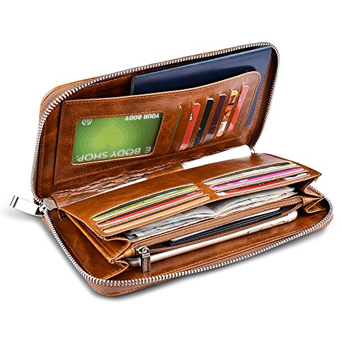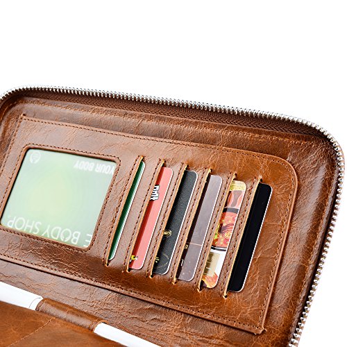 -. Feature : 1. [GENUIN LEATHER] 100% Genuine leather.Made with premium high quality leather for a classy look. It has a smooth, soft and luxurious feel in your hands. / 2. [HIGHLY FUNCTIONAL] Carry all your travel essentials in one place. 1 slot for passports, 12 slots for credit card and IDs, 1 large pocket for phone and 1 secure zipper compartment for cash, boarding passes and tickets. / 3. [SLIM&STYLISH] Sleek classic brown color and design is perfect for business, family and international travelers alike. Fits perfectly into an inner coat or jacket pocket for easy access and carry. / 4. [PERFECT HOLIDAY GIFT] Packaged in a beautifully embossed gift box. The perfect present for Christmas, anniversaries, birthdays or the travels in your life. / 5.[SIZE] 214x115x30mm. It is a great tablet touch screen sleeve for school, dating, shopping and traveling in daily life. It is a wonderful gift for your friend.
