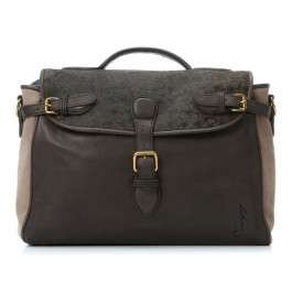 -. Feature : can be carried three-ways: as a backpack, a shoulder bag or handcarried as a briefcase / Flap with triple-buckle closure / exterior zip pocket at the back / denim lined interior with drawstring closure sack / inside has 1 open pocket, zip pocket and 3 leather pen loops