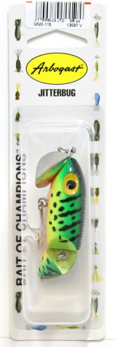 -. Binding : Sports -. Brand : Arbogast -. Feature : Arbogast offers supreme topwater fishing lures / Diving depth topwater / Species all freshwater game fish / Technique cast and retrieve allowing the lure work back and forth on the surface / For best results use a double loop knot with 8 to 10 lb test line -. Label : Arbogast Lures -. Manufacturer : Arbogast Lures -. Model : JOINTED-P -. ProductGroup : Sports -. ProductTypeName : SPORTING_GOODS -. Publisher : Arbogast Lures -. ReleaseDate : 2012-05-25 -. Studio : Arbogast Lures -. Title : Arbogast Jointed Jitterbug Fishing Lures