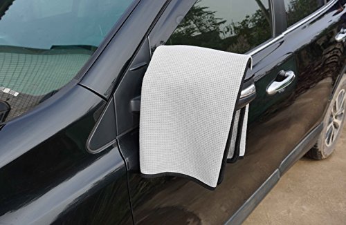 - The waffle weave drying towel is luxuriously extra large and super absorbent, measuring at 28 inch by 40 inch, perfect for larger cars, trucks, SUVs, and boats.