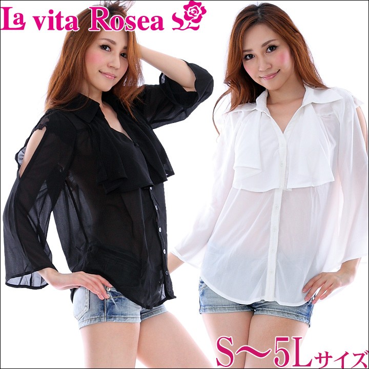 シフォンレースレイヤーシャツ(OX) 大きいサイズ 春 セクシー レディース ギャル服 ギャル 大人 13号 15号 17号 19号 LL 2L 3L 4L 5L 6L 6L