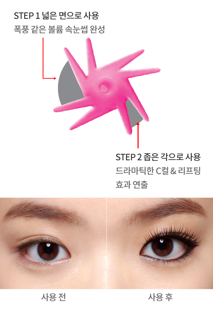ピンク嵐ブラシが柔らかいテクスチャーでまつ毛にボリューム・かーリングを与えます。 長時間Cカールのまつ毛を維持してくれます。