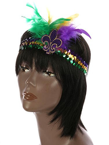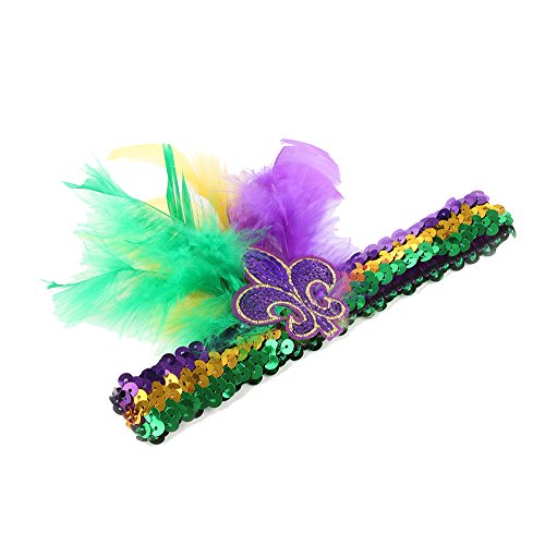 Product DescriptionMARDI GRAS SEQUIN HEAD BAND HAIR ACCESSORY SIZE 14 INCH LONG COLOR Purple DESCRIPTION HAIR ACCESSORY MARDI GRAS SEQUIN HEAD BAND FLEUR DE LIS FEATHER ELASTIC STRETCH 14 INCH LONG0
