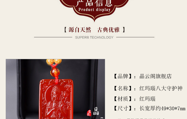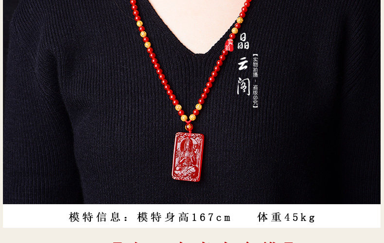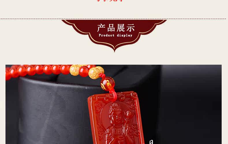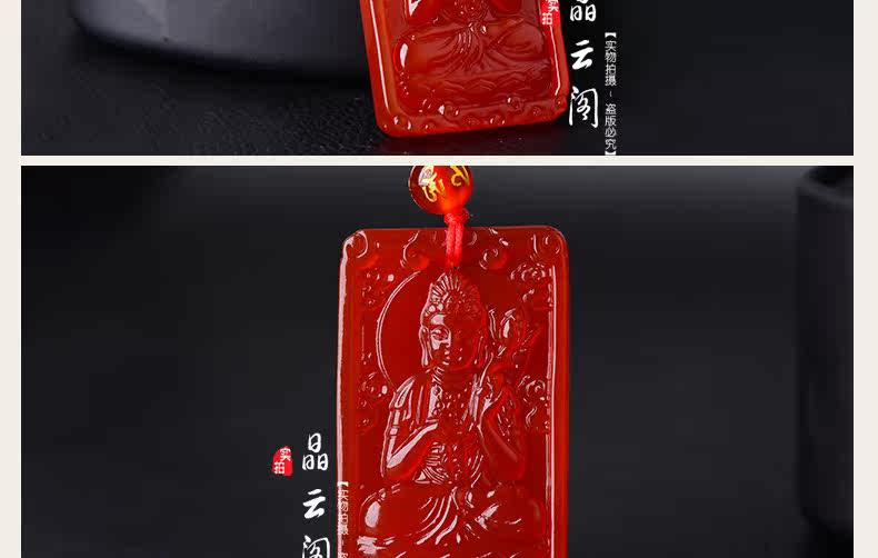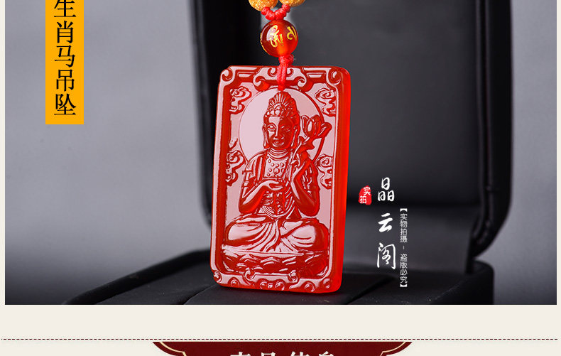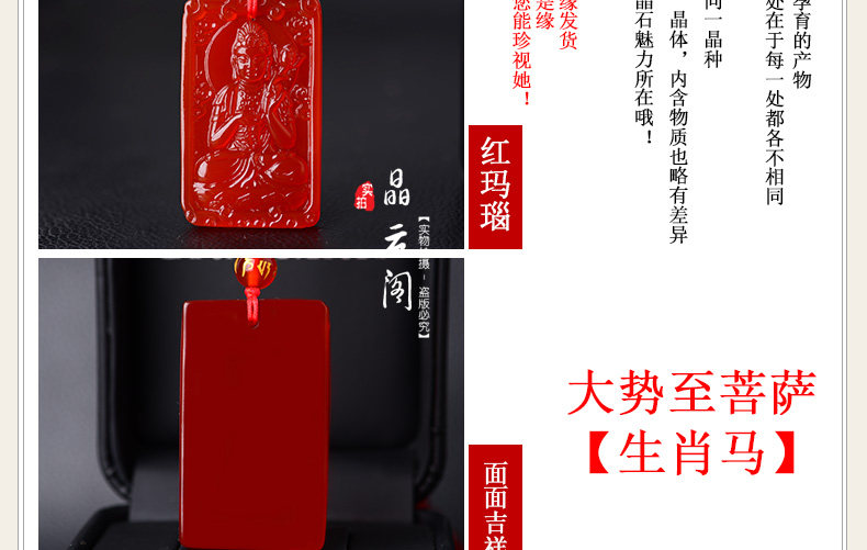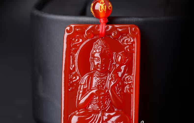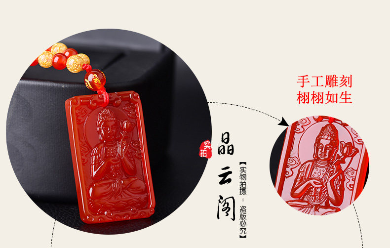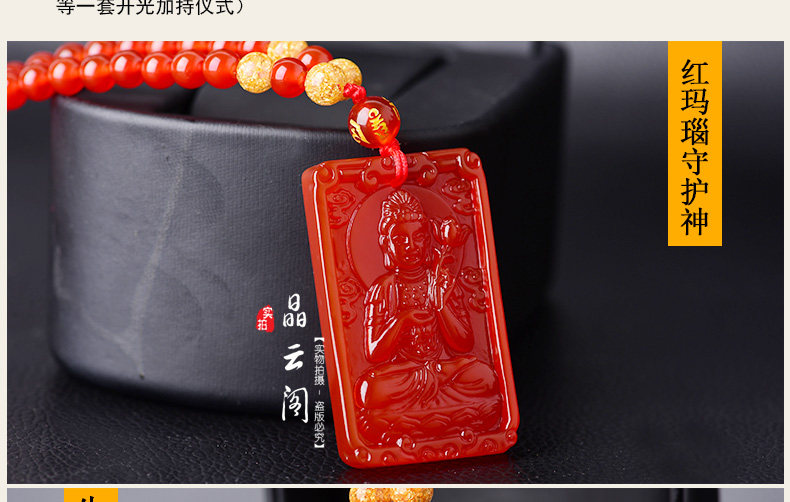 开光天然红玛瑙大势至菩萨 生肖属马本命佛护身符男女吊坠项链