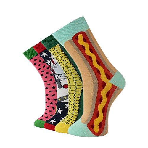 -. Title : Mens Colorful Dress Socks Fashionable novelty Fun Crew Socks skateboard long socks 4 packs size 6-12