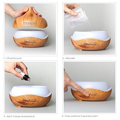 All In One: Aromatherapy diffuser adopts ultrasonic technology that provides whisper smooth mist and pleasant aromas to create a calm, relaxing environment, soften and moisten dry and chapped skin.