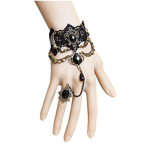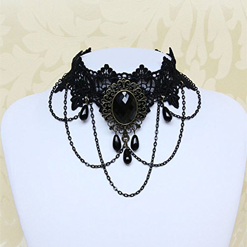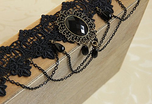 ✔️ PREMIUM MATERIAL: Made of black Lace, bronze metal alloy, iron chain, man made pearl and resin rhinestones, all thse accessory are firmly connected, not easy to break
