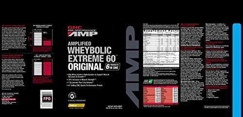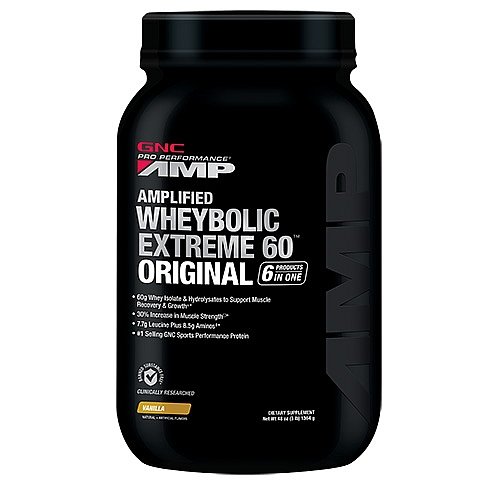 -. Binding : Health and Beauty -. Brand : GNC -. EAN : 0048107167387 -. Feature : 60g Whey Isolate & Hydrolysates to Support Muscle Recovery & Growth* / 30% Increase in Muscle Strength* / 7.7g Leucine Plus 8.5g Aminos* / The Amplified Wheybolic Extreme 60 Original Evolution / How Is This Protein Amplified? Gnc's Scientists Worked With Leading Exercise And Sports Nutrition Experts And Went Beyond The Extreme To Develop This Distinct Product... -. Label : GNC -. LegalDisclaimer : WARNING: Do Not Use For Weight ReductionCONTAINS: Milk and Soybeans. -. Manufacturer : GNC -. MPN : 386461 -. PackageQuantity : 1 -. PartNumber : 386461 -. ProductGroup : Health and Beauty -. ProductTypeName : HEALTH_PERSONAL_CARE -. Publisher : GNC -. Size : 3 lbs. -. Studio : GNC -. Title : GNC Pro Performance AMP Amplified Wheybolic Extreme 60 Original Vanilla 3 lbs. -. UPC : 048107167387