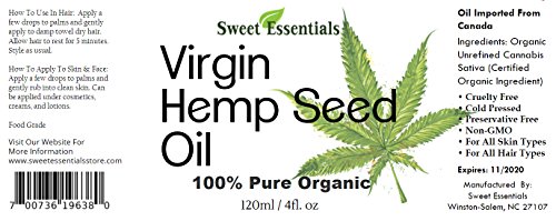 Organic Extra Virgin Unrefined Hemp Seed Oil (Food Grade) - 4oz - Imported From Canada - 100% Pure Cold Pressed - Offers Relief From Dry & Cracked...