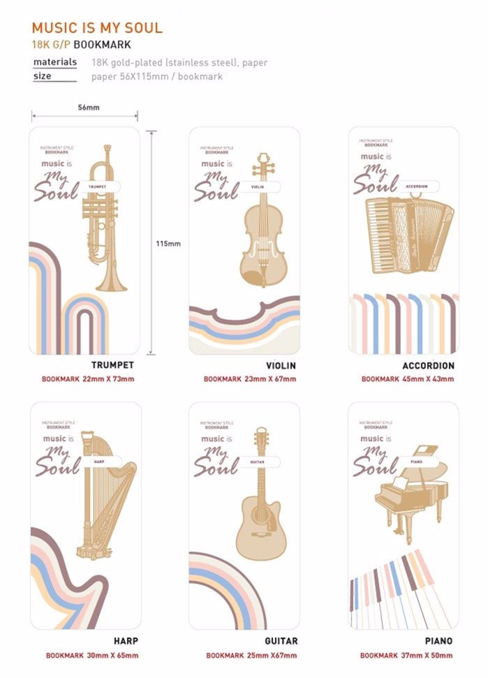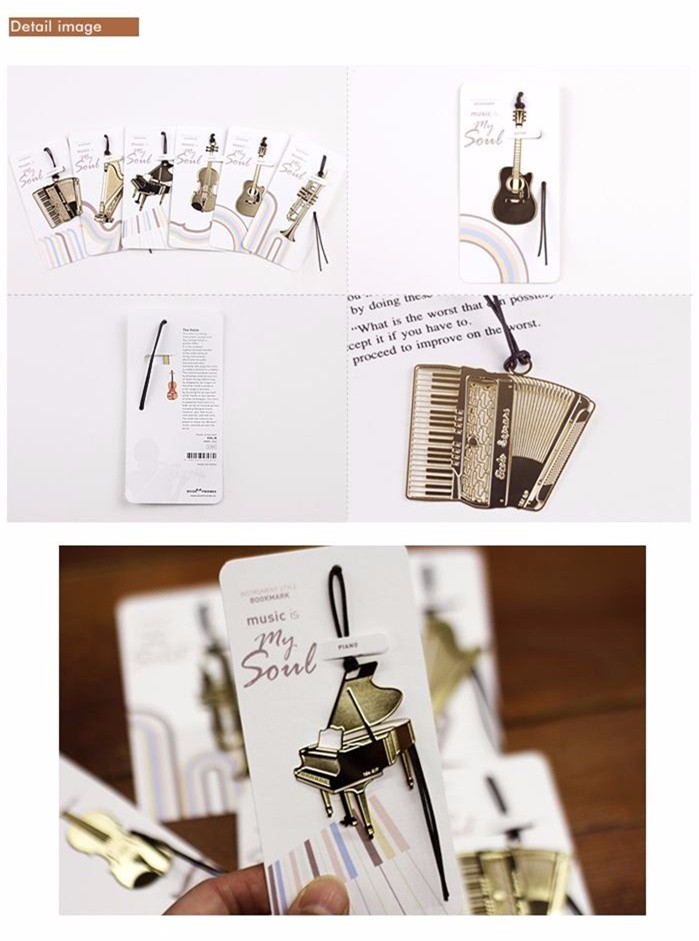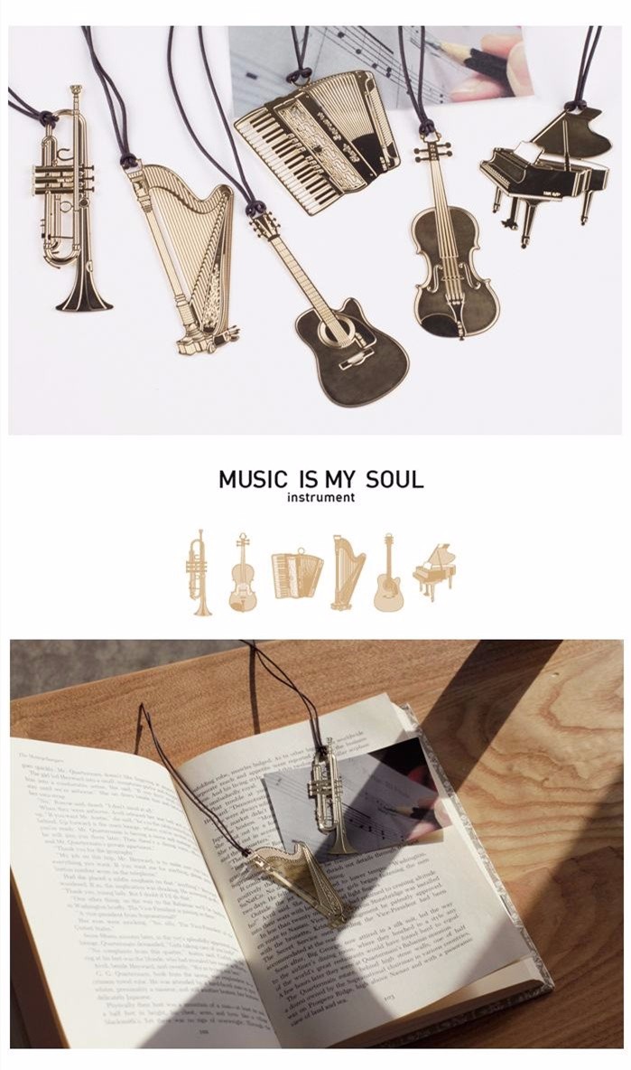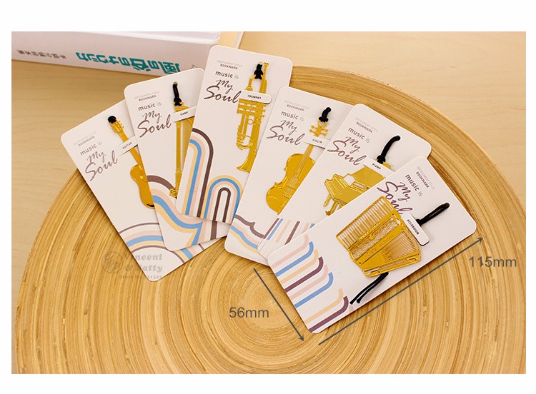 6 pcs/Lot 18K gold-plated metal bookmark Musical instrument bookmarks page clip livro marcapaginas office School supplies 6832