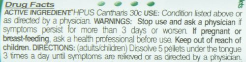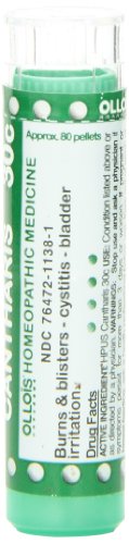 ReleaseDate : 2013-06-22 Studio : OLLOIS Homeopathic Medicines Publisher : OLLOIS Homeopathic Medicines Binding : Health and Beauty Product Description Ollois Cantharis 30C homeopathic single medicines. Traditionally used to temporarily improve symptoms of cystitis, bladder irritation, burns and blisters. The dosage is not related to the weight and age of the patient. In general, dissolve 5 pellets 3 times a day until symptoms are relieved or as directed by your health care professional. Contains appx. 80 pellets in each tube, each dose should be placed under the tongue of adults and children, or in the cheek of an infant, where they will dissolve. It is preferable to take apart from meals. No side effects, no drug interaction. For informational purposes only, not intended for, and neither should it be taken as a substitute for professional medical advice. Stop use and ask a physician if symptoms persist for more than 3 days or worsen. If pregnant or breast-feeding, ask a health professional before use. Keep out of reach of children. These 'Uses' have not been evaluated by the Food and Drug Administration. 0