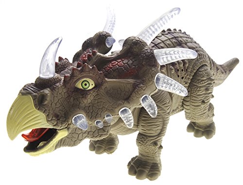 -. Feature : Mighty Triceratops walks, roars, and features glowing around the head / Real life like details / 3 AA required (not included) / Fun prehistoric dinosaur! / Made out of sturdy plastic, so it will last through rough play