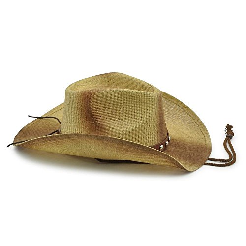 - Aussie is made of 100% paper drifter style cowboy hat. Offering one size fits most 3.5" rim with leather studded conch