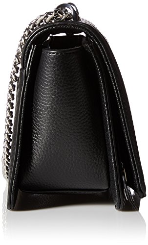 Helen shoulder bag, flap lock closure, chain shoulder strap, structured body with woven detail on the face