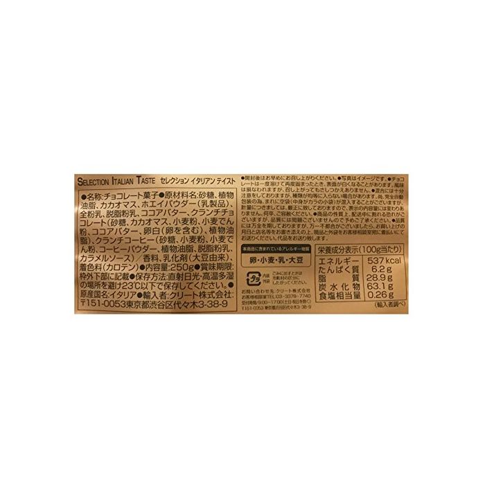 원재료:설탕,식물성 기름지,카카오 마스,《호에이파우다》(유제품)고, 전분유,탈지분유,코코아 버터,crunch 쵸코렛(설탕,카카오 마스,소맥분,밀 나오지 않겠 분,코코아 버터,계란 흰자,식물성 기름지)고, crunch 커피(설탕,소맥분,밀 나오지 않겠 분,커피 파우더,식물성 기름지,탈지분유,카라멜 소스)고, 향료,유화 제(대두 유래)고, 착색료(카로텐)