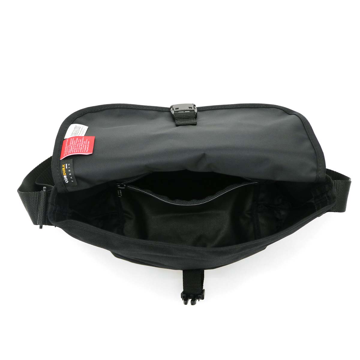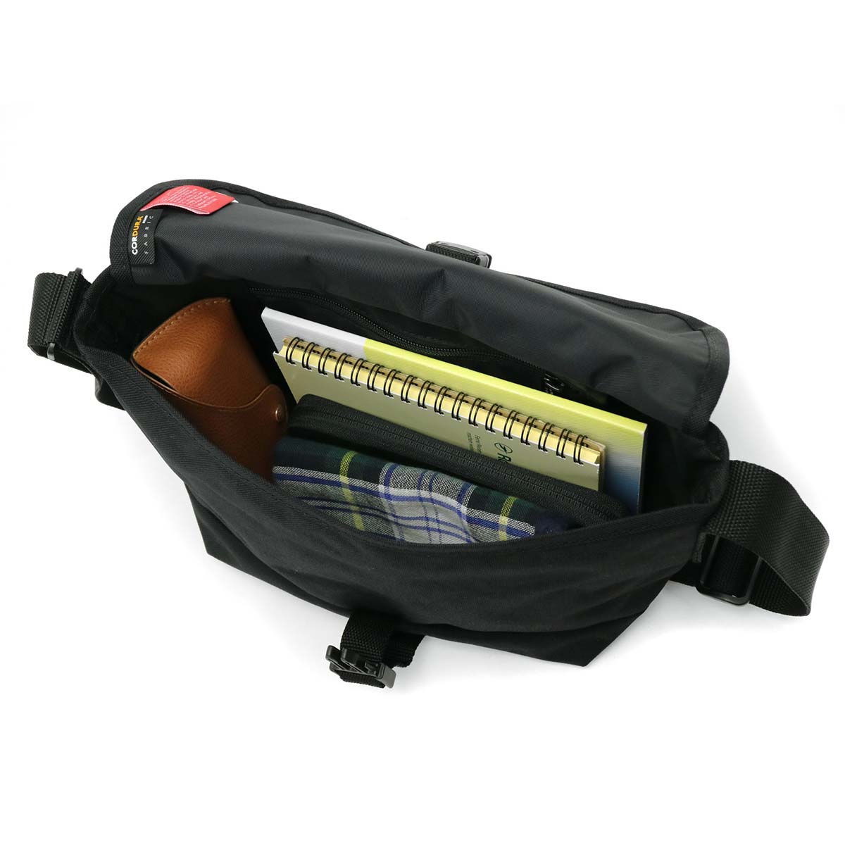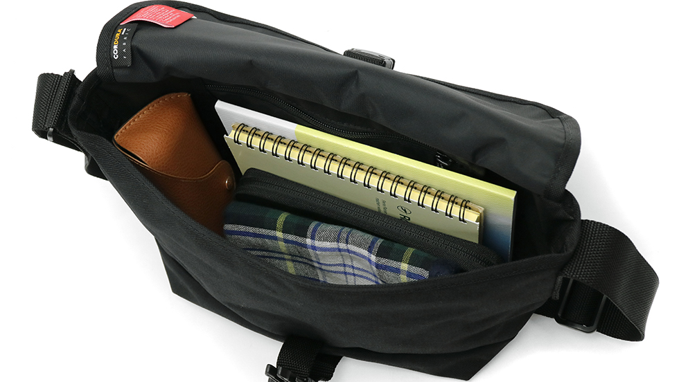 お財布やペットボトル、手帳など普段持ち歩く荷物が収納できます。大きすぎずかつ収納力があり、デイリーユースにも休日のお出かけにもぴったりのサイズ感。フラップの留め具は、カチッと閉まるバックル式を採用しています。