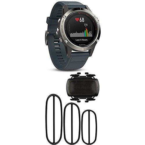 Garmin Fenix 5 - Silver with Granite Blue Band and Bike Cadence Sensor