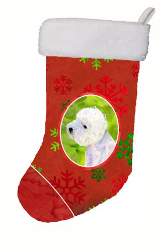 Caroline's Treasures LH9315-CS Westie Red and Green Snowflakes Holiday Christmas Stocking, 11 x 18", Multicolor