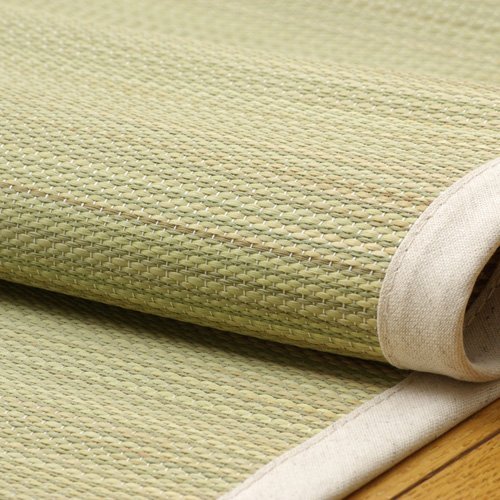 -. Feature : Size: About 39 x 78 in. / Body Weight: 1.5 lbs / Material: 100% Rush Grass (Grown in Japan), Edge: 15% linen/ 85% Cotton, with Back Rubber Band / Made in JAPAN / Can be Rolled and Stored.