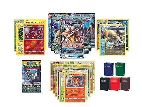 -. Title : Pokemon GX Guaranteed with Sun and Moon Booster Pack, 5 Holo/Reverse Holo Cards, 5 Rare Cards, 20 Regular Pokemon Cards, Deck Box and Bonus