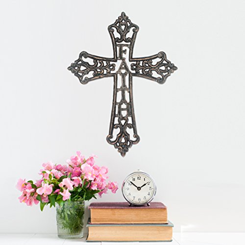 Stonebriar Decorative Distressed Cast Iron "Faith" Hanging Wall Cross, Rustic Cross for Wall of Crosses, Unique Religious Decor for the Living Room, Kitchen, Hallway, Bedroom, and Nursery